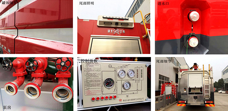 消防車注水:檢查軸承箱及油位→關閉余水旋塞及閥門→打開真空泵→打開引水閥,即可向水罐注水;使用消防栓中的水時,用水帶將消防栓與水罐外注水接口相連,水直接注入水罐中消防車出水:打開后進水蝶閥,啟動消防泵→1.消防泵工作后,打開低壓出水球閥即可實現低壓出水2.低壓工作時,關閉低壓出水球閥,打開炮球閥,可實現炮出水滅火→消防車水泵使用完→放掉泵內余水關閉開關以利防凍。