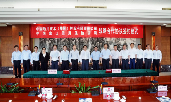 9月8日上午,中國信保蔡希良總經理一行赴中國通用技術(集團)控股有限責任公司(以下簡稱“中國通用技術集團”)會見陸益民總經理,并出席雙方戰略合作協議簽署儀式。